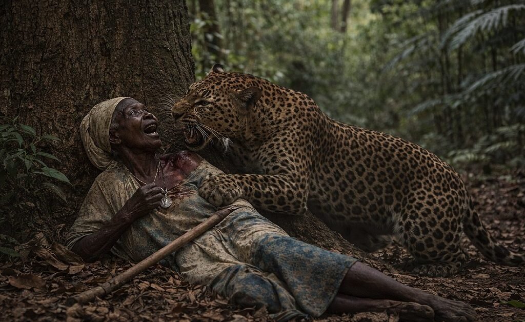 Una anciana, atrapada por un leopardo, clama a la Virgen en medio del dolor. Su fe sencilla abre paso al milagro: la fiera huye y ella salva su vida.